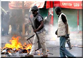 La nuit tombe sur Dakar et les accrochages entre agitateurs et forces de l’ordre se poursuivent dans le quartier de la Médina. Vers 21h30, avenue Blaise Diagne, une voiture renversée brûle encore, projetant dans le ciel une épaisse colonne de fumée noire. Des violences éclatent également dans les villes de Thiès, Kaolack, où la nouvelle permanence du Parti démocratique sénégalais (PDS, au pouvoir) a brûlé, et Tivaouane, ville sainte de la confrérie tidiane, où la mairie et le domicile de l’élu PDS ont été incendiés. À huit jours des élections, l’attaque de la mosquée El Hadj Malick Sy a choqué l’opinion sénégalaise et pourrait faire perdre de précieuses voix au candidat Abdoulaye Wade.